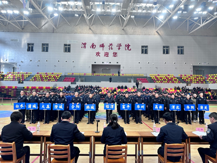 12月18日,渭南市公安局联合渭南师范学院保卫处主办的“精兵2025”全市公安经文保部门重点单位最小应急单元实战比武在校云帆体育馆举行。渭南师范学院党委副书记常青林致辞。省公安厅经文保总队政委韩红,市公安局党委委员、副局长王少飞等领导参加活动。