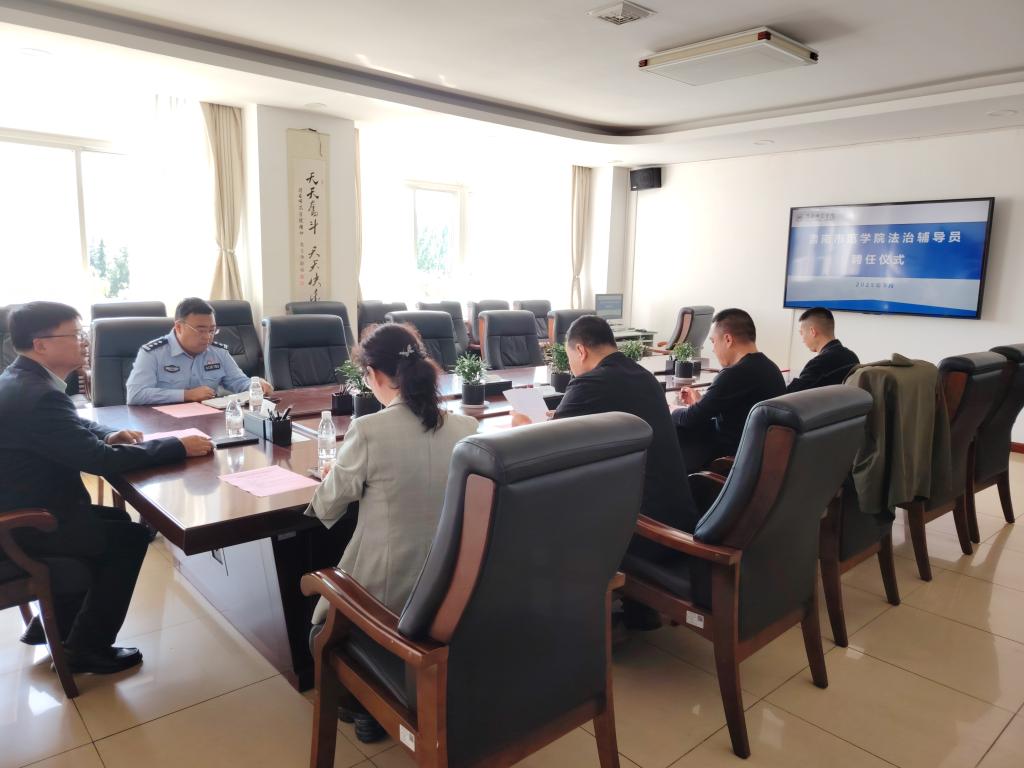 9月24日下午,学校法治辅导员聘任仪式在厚德楼第一会议室隆重举行。学校党委副书记常青林出席会议并讲话。学工部部长田耿辉、保卫处副处长戴磊及受聘法治辅导员公安局临渭分局经文保大队副队长张兴斌等人参加会议。会议由保卫处副处长苟卫锋主持。